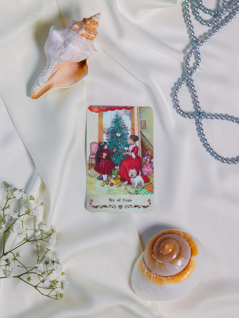 - Кубки — Зима: чувственность, близость, эмоциональная насыщенность. В концепции колоды это время Рождественских праздников в Англии - периода любви, семейного тепла и душевной полноты.